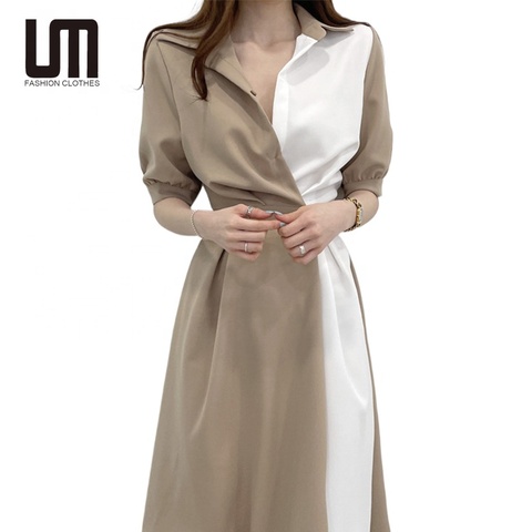 劉明新韓国ファッションエレガントカジュアルオフィスレディースコントラストカラースリムウエスト女性ドレス