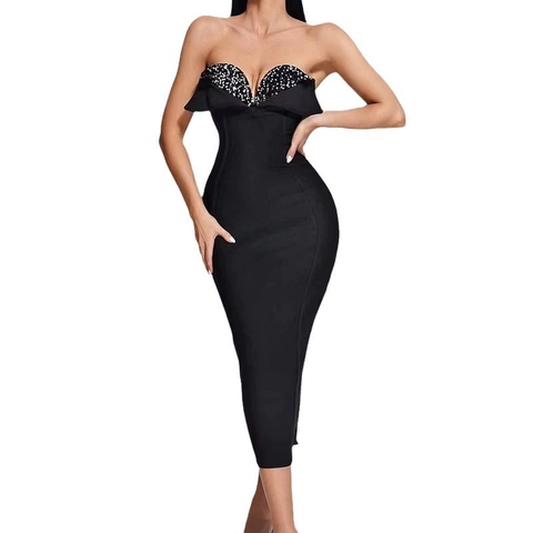 Liu Mingハイエンドビンテージエレガントストラップレスラインストーンフリンジロングガウン女性用イブニングドレス